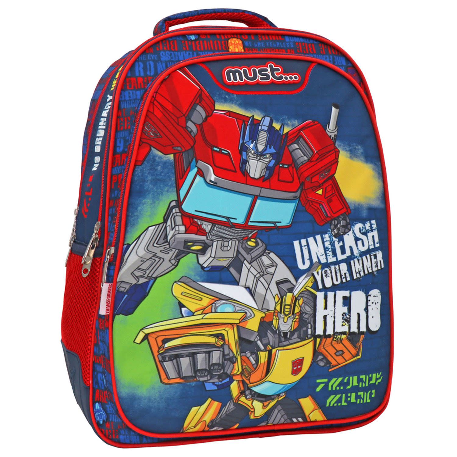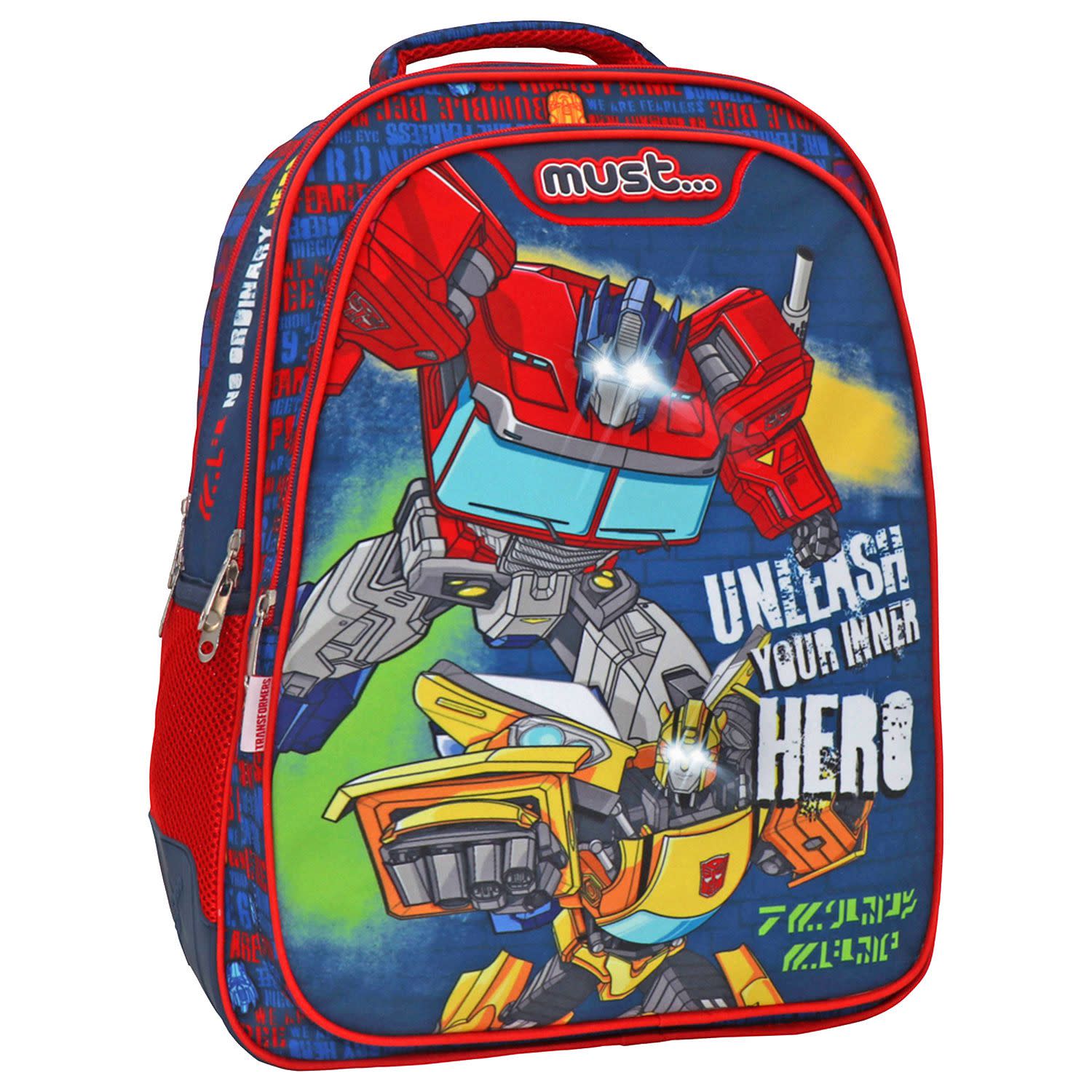 Σχολική Τσάντα Transformers Unlease your Inner Hero της Must, με 3 ευρύχωρες θήκες, για μαθητές που δεν αποχωρίζονται τους αγαπημένους τους ήρωες ακόμα και μέσα στην τάξη! Πρακτική και με υπέροχο σχεδιασμό, με LED φώτα που ανάβουν, εξασφαλίζει την καθημερινή ασφαλή, άνετη και εύκολη μεταφορά όλων των απαραίτητων σχολικών ειδών.
