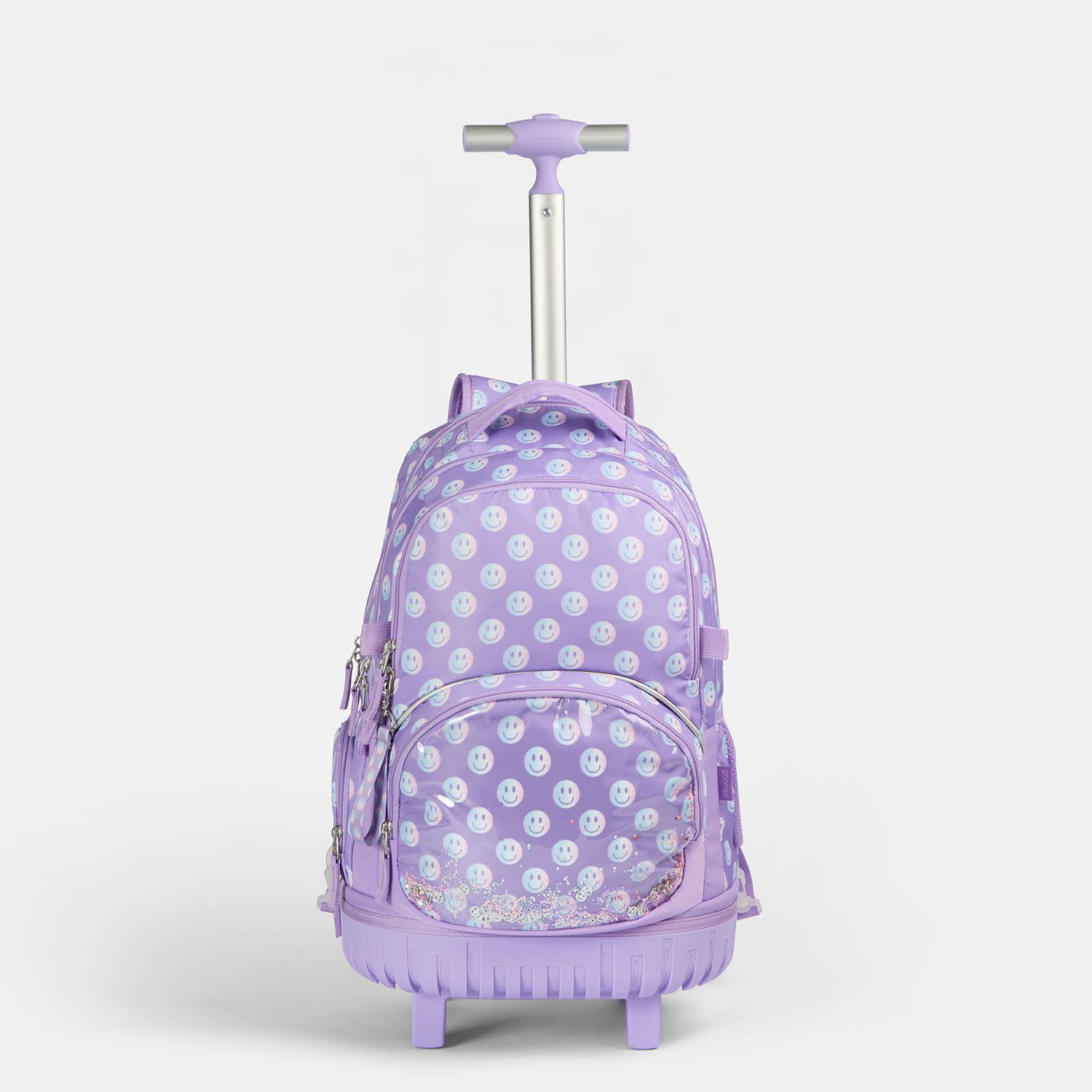 Επιστροφή στο σχολείο με το ολοκαίνουριο, design-άτο, σχολικό trolley Smiley! Διαθέτει ευρύχωρες θήκες για να παίρνεις μαζί όλα τα σχολικά που χρειάζεσαι για το μάθημα, ενισχυμένο πάτο και ανθεκτικά ροδάκια για να μεταφέρεις με άνεση τα βιβλία και να μην επιβαρύνεται η σπονδυλική σου στήλη όσο την κουβαλάς.