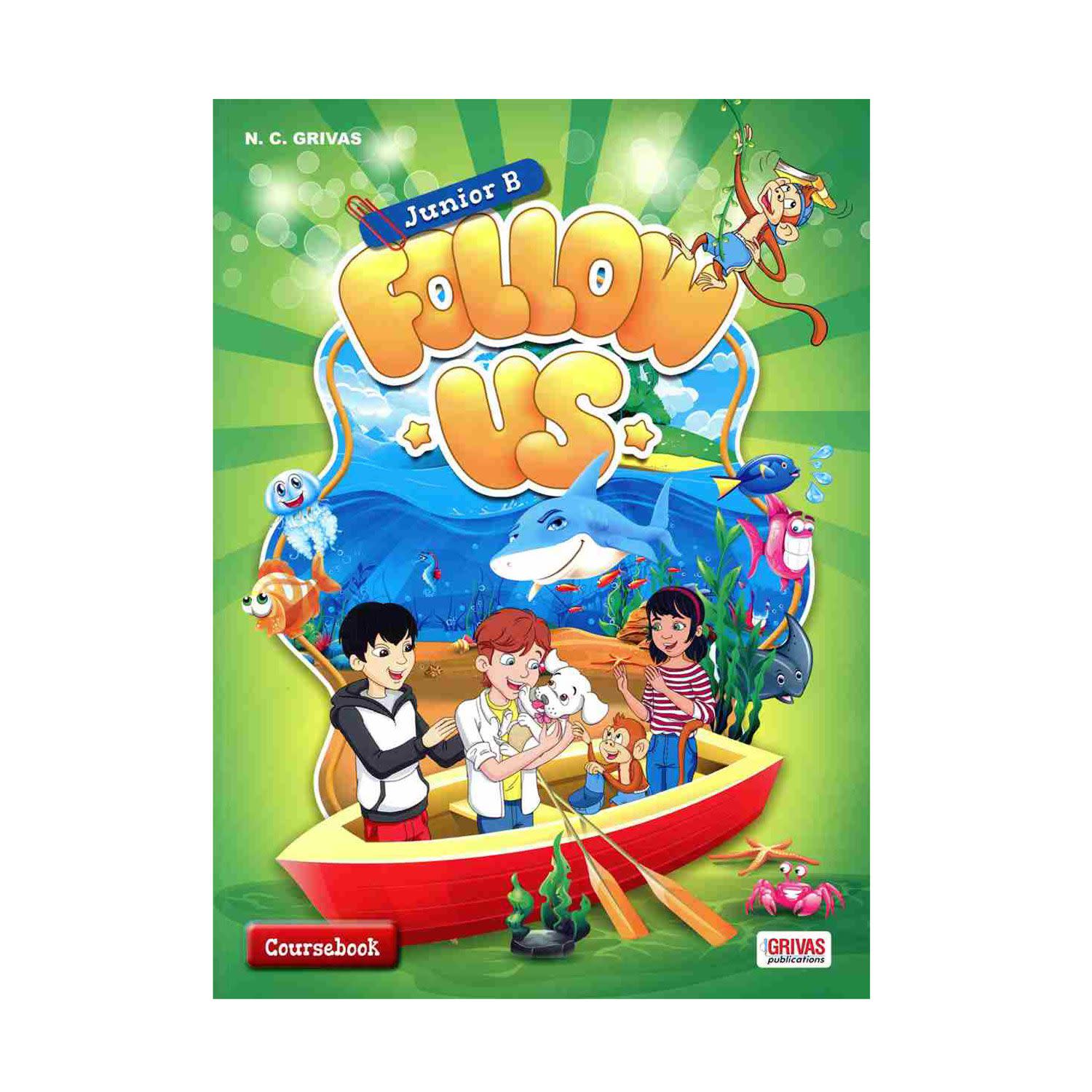 Το Follow Us Junior B Student’s Book είναι ένα νέο μαγευτικό βιβλίο μαθημάτων που έχει σχεδιαστεί για να παρακινεί τους νεαρούς μαθητές και να τους ενθαρρύνει να συμμετέχουν ενεργά στη μαθησιακή διαδικασία. Για να ζωντανέψουν την αγγλική γλώσσα, οι μαθητές θα ακολουθήσουν τις συναρπαστικές περιπέτειες του Άλφι, της Λούσι, του Φιν και των δύο αξιολάτρευτων κατοικίδιων του Φιν, του πίθηκου Peanut και του κουταβιού Honey. Αυτοί οι χαρακτήρες παρέα με δύο αστείους δεινόσαυρους, έναν αξιαγάπητο υπερήρωα και μια ποικιλία διασκεδαστικών δραστηριοτήτων και παιχνιδιών, συνδυάζονται για να παρέχουν ένα περιβάλλον όπου η μάθηση είναι super διασκεδαστική.