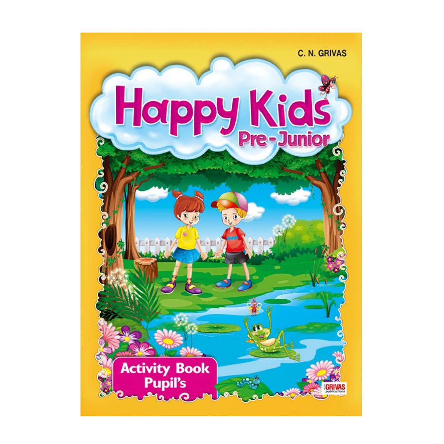 Συγκεκριμένα το «Happy Kids Pre Junior Workbook» πρόκειται για ένα προσεκτικά δομημένο βιβλίο, που εισάγει τα παιδιά στην αγγλική γλώσσα με έναν ευκολονόητο τρόπο, μέσω μιας ποικιλίας διασκεδαστικών, διαδραστικών ασκήσεων που επιτρέπουν στα παιδιά να αναπτύξουν την αυτοπεποίθησή τους στους τομείς της ανάγνωσης, της γραφής, της ομιλίας και της ακρόασης. Έρχεται με πέντε μικρές ιστορίες ζώων, ακολουθούμενες από διασκεδαστικές δραστηριότητες, με πέντε μαθήματα εξάσκησης δεξιοτήτων στο πίσω μέρος του και με ζωηρά διασκεδαστικά τραγούδια. Επίσης, περιέχει τακτικά μαθήματα αναθεώρησης για να ελέγχονται οι γνώσεις που έχουν αποκτήσει τα παιδιά.