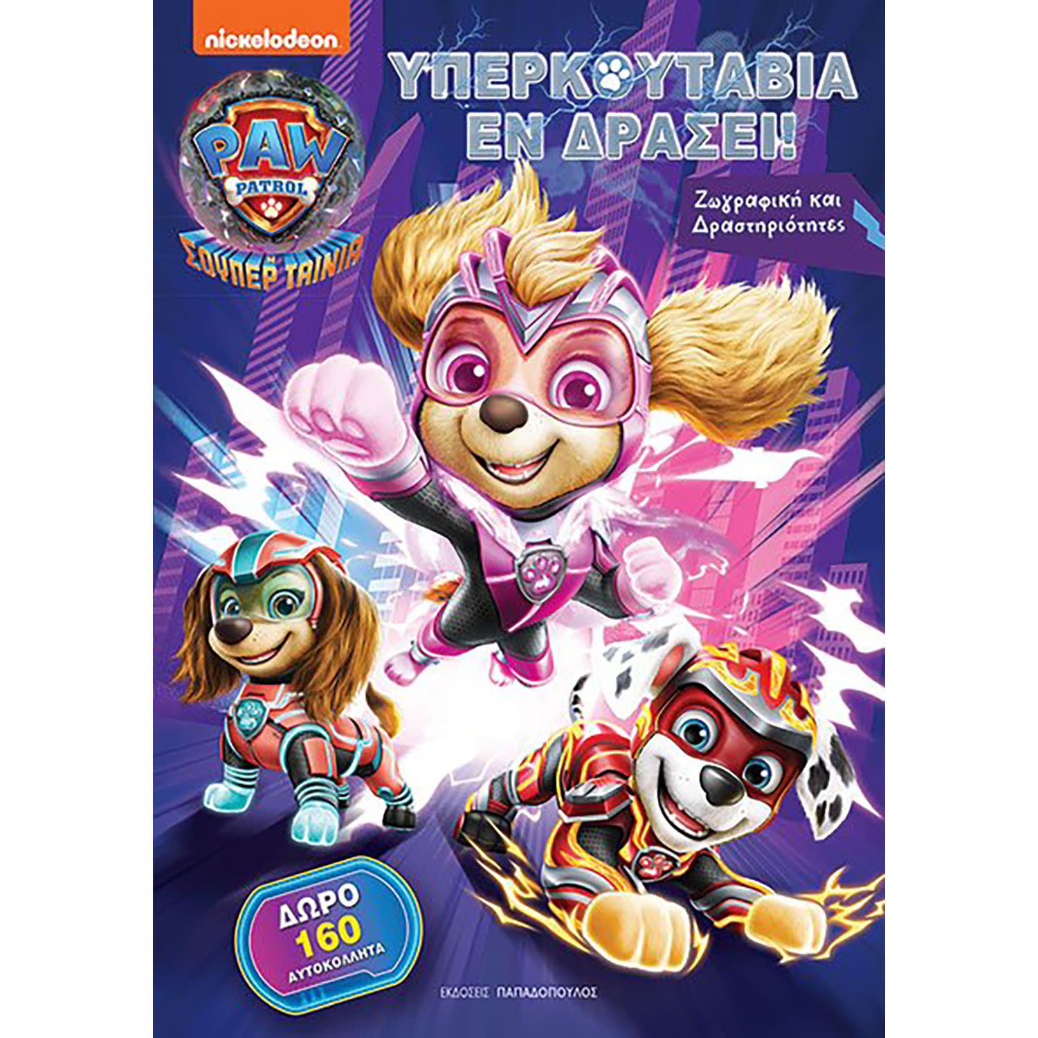 Νέες, τετράποδες περιπέτειες για τους φίλους των Paw Patrol! Δεκαέξι σελίδες εμπνευσμένες από τη σούπερ ταινία, για να τις γεμίσεις με χρώματα και 160 αυτοκόλλητα.