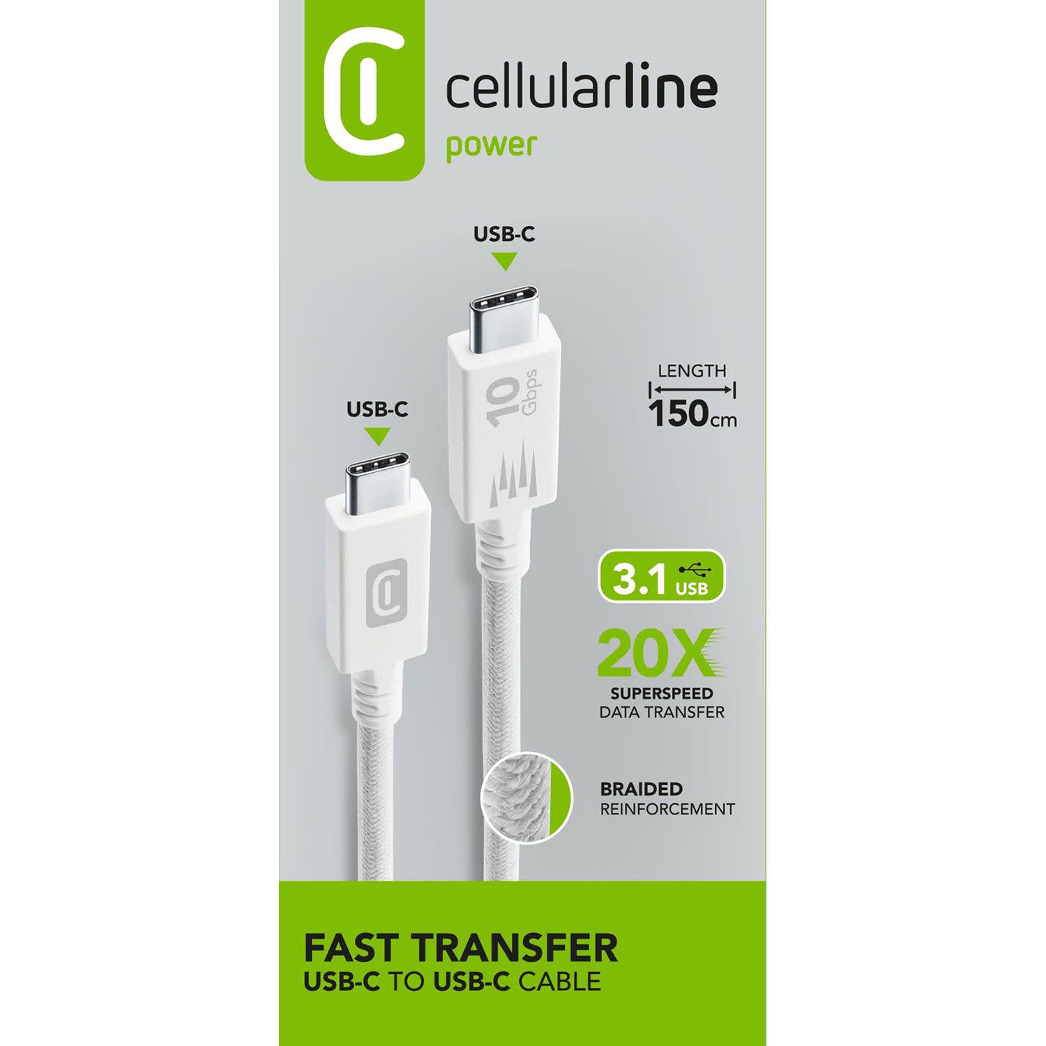 Cellularline Καλώδιο USB-C to USB-C 100W 1.5 m Λευκό