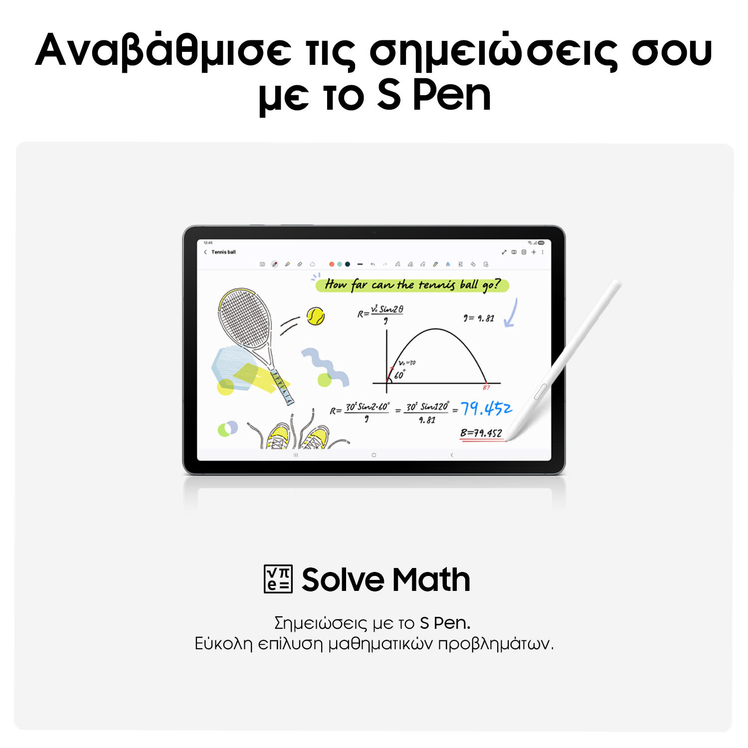 Με τις μεγάλες δυνατότητες Τεχνητής Νοημοσύνης (Circle to Search, Writing Assist, Object Eraser κ.ά.), οι καθημερινές εργασίες και δραστηριότητες αποκτούν νέα διάσταση. Είτε είσαι επιχειρηματίας, υπάλληλος, καλλιτέχνης, φοιτητής ή μαθητής, με το Galaxy Tab S10 Lite και το S Pen μπορείς να ολοκληρώνεις τις εργασίες σου ταχύτερα και αποτελεσματικότερα με την υψηλής αποκρισιμότητας πανέμορφη οθόνη 10,9” (90Hz), την βελτιωμένη απόδοση (Samsung Exynos 1380) και την ταχύτατη συνδεσιμότητα (Wi-Fi® 6 και 5G).