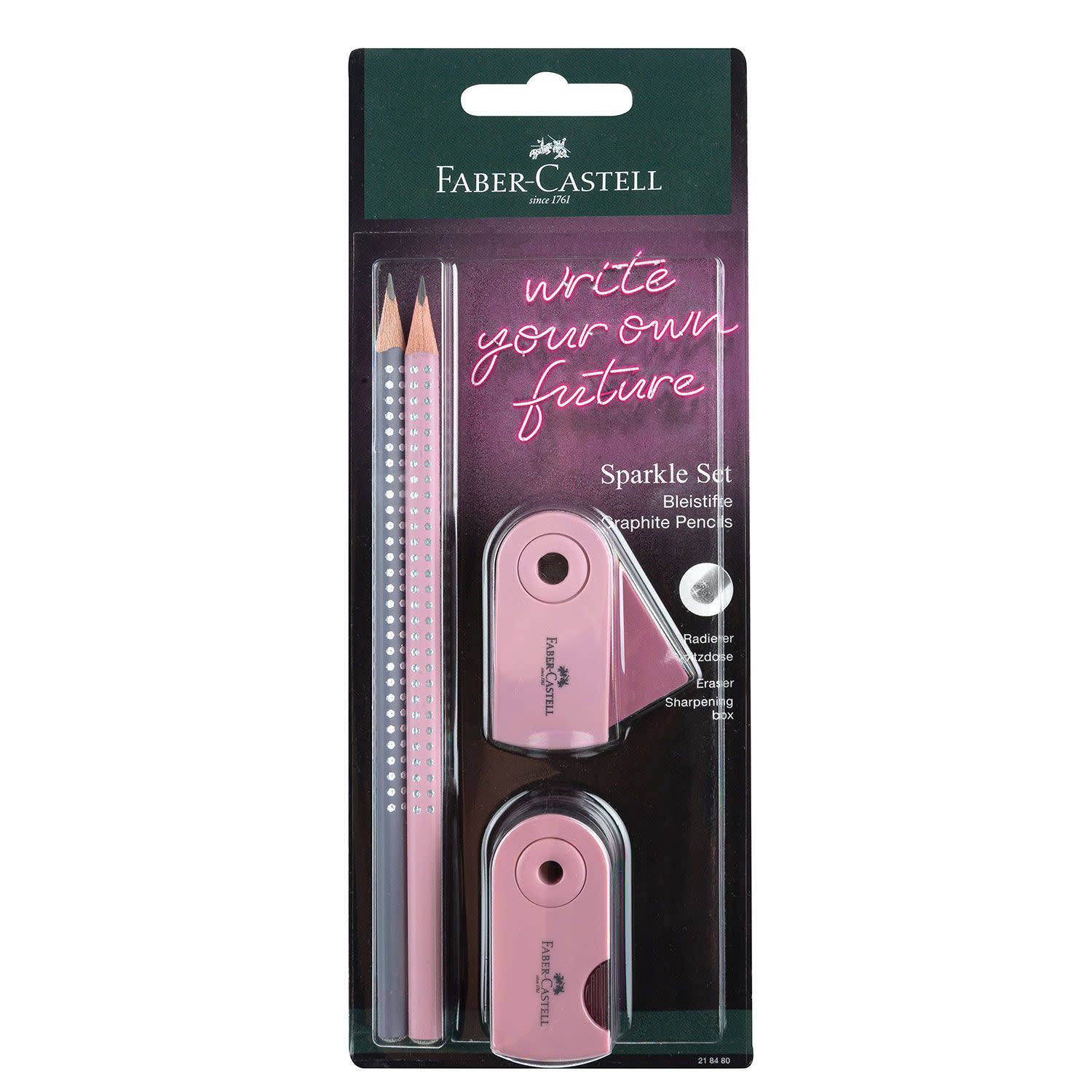 Ένα υπέροχο σετ sparkle της Faber Castell με δύο μολύβια, μια γόμα και μια ξύστρα. Τα μολύβια διαθέτουν ανάγλυφη λαβή, για σταθερό κράτημα και εργονομικό τριγωνικό κορμό για ξεκούραστη γραφή.