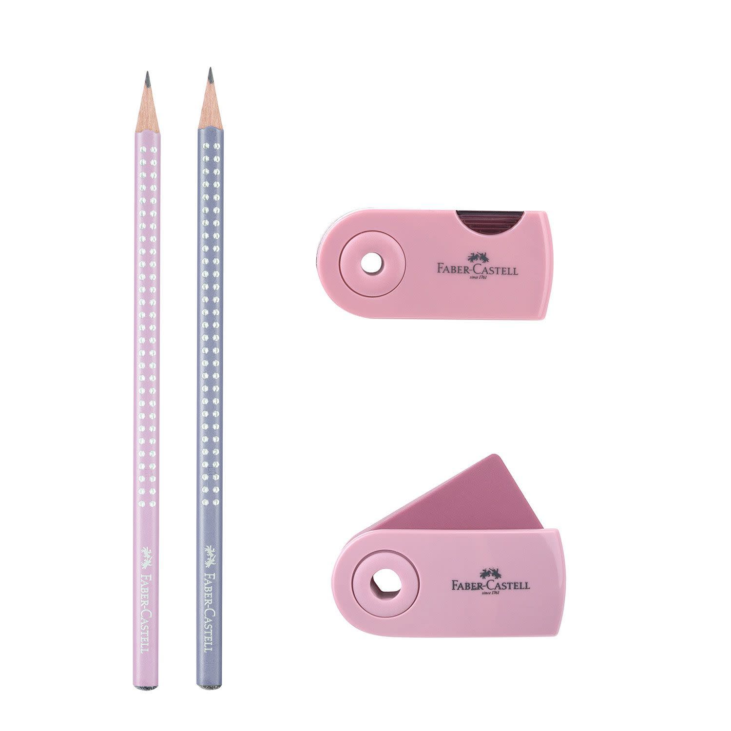 Faber Castell Μολύβια Sparkle II Γκρι/Ροζ B 2τεμ. & Γόμα & Ξύστρα Mini Sleeve