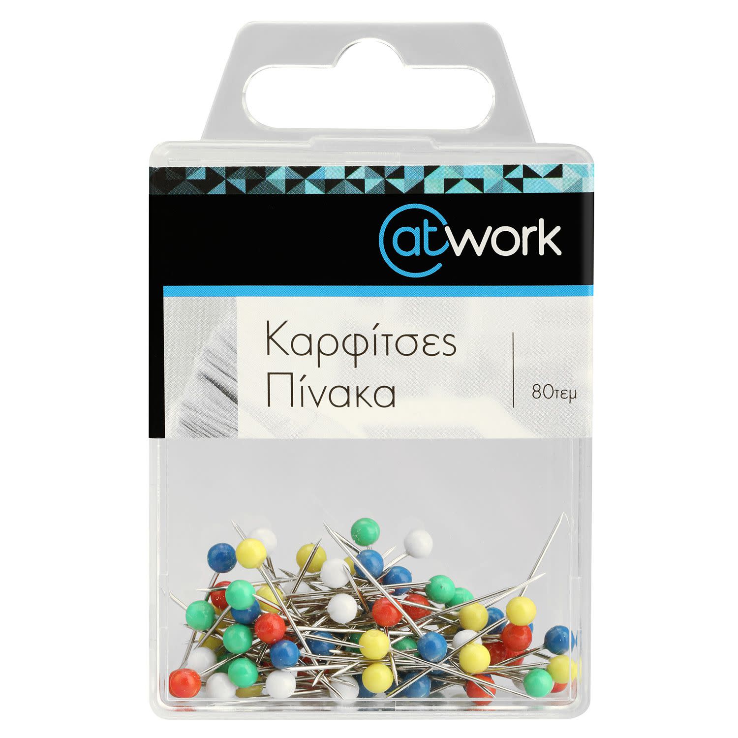 Η συσκευασία περιλαμβάνει 80 καρφίτσες με έγχρωμο κεφάλι.