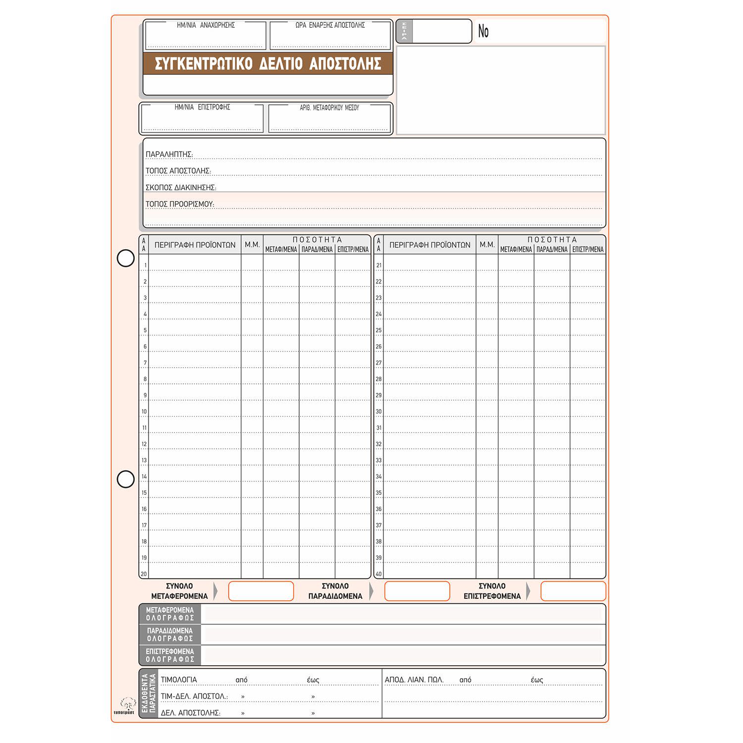 Τυποτράστ δελτίο αποστολής συγκεντρωτικό, No 271, απαραίτητο για την καταγραφή και αποστολή προϊόντων.