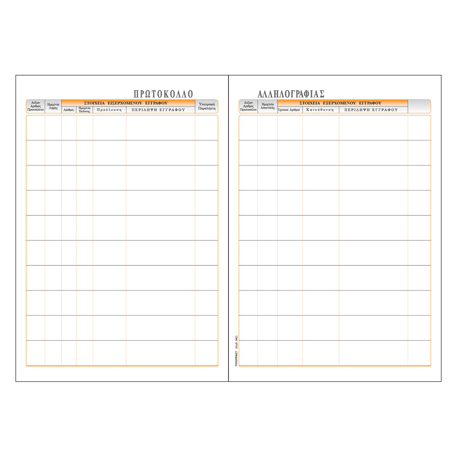 Τυποτράστ Πρωτόκολλο Αλληλογραφίας Νο 542