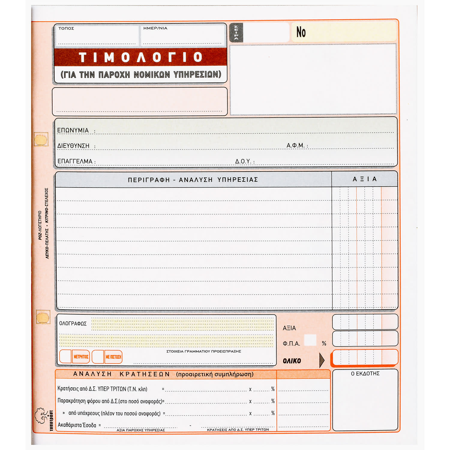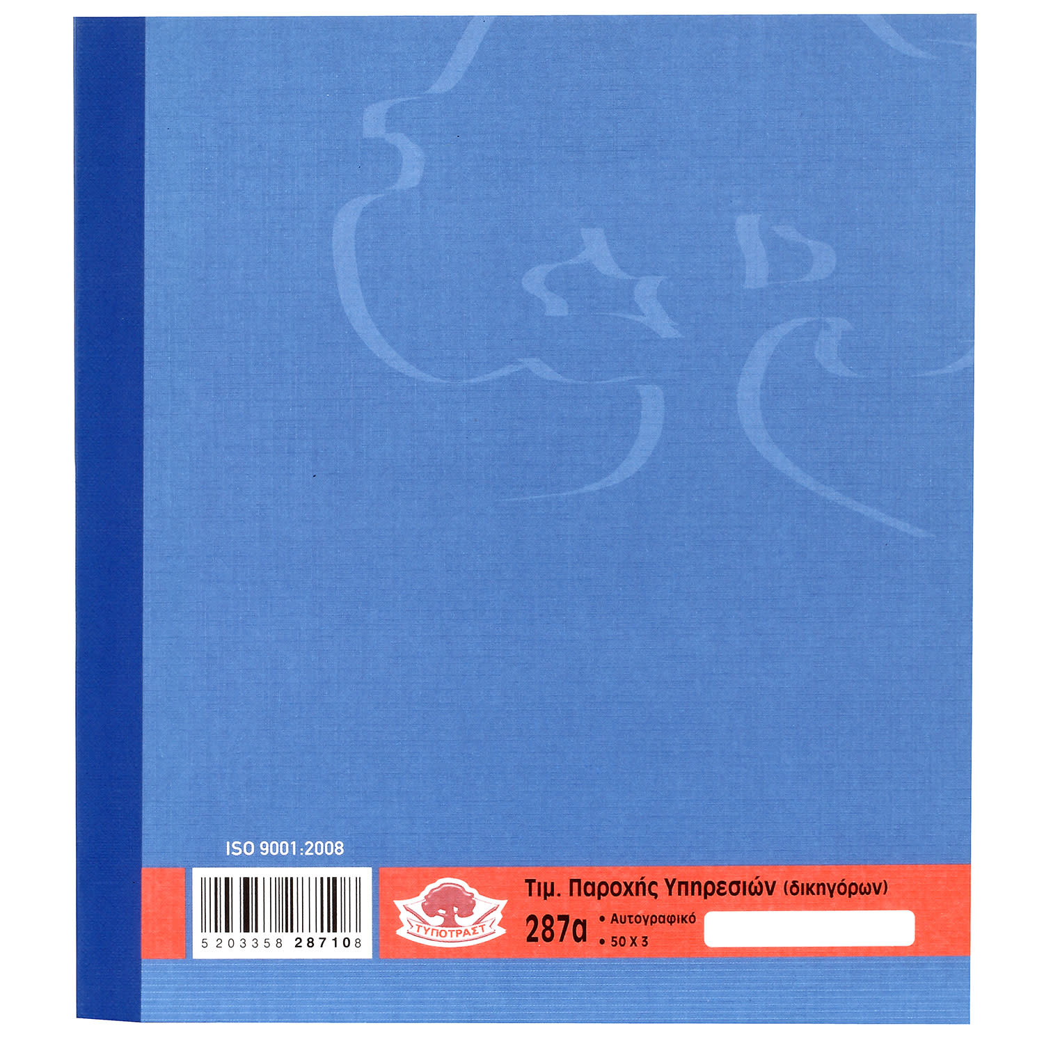 Τυποτράστ τιμολόγιο παροχής υπηρεσιών, No 287α, αυτογραφικό τιμολόγιο παροχής υπηρεσιών, κατάλληλο για δικηγόρους.
