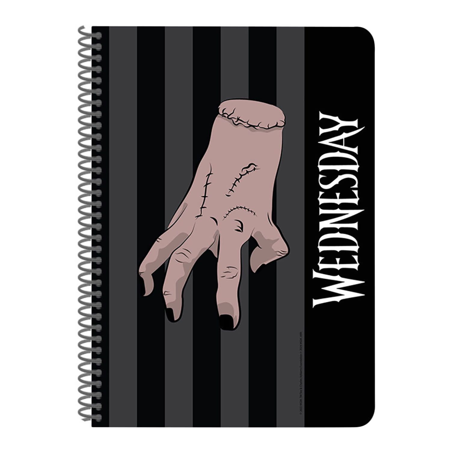 Τετράδιο σπιράλ Wednesday από την αγαπημένη πλέον σειρά! Έχει διαστάσεις 17x25cm και δύο θέματα για να χωρίζεις τις σημειώσεις σου ανά μάθημα. Συνολικά διαθέτει 60 φύλλα, ενώ έρχεται σε 2 μοναδικά σχέδια για να επιλέξεις το αγαπημένο σου!