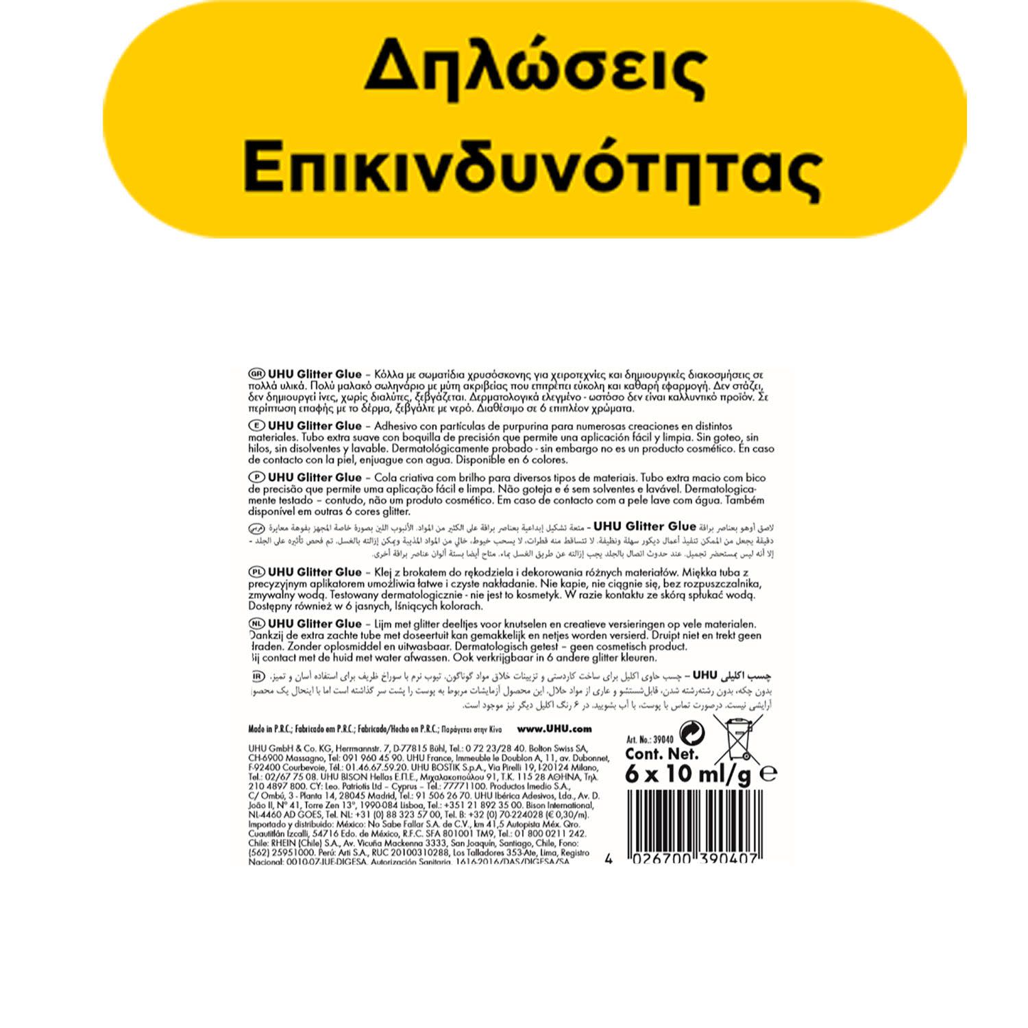 UHU κόλλα υγρή σε 6 έντονα Glitter χρώματα, ιδανικά για να διακοσμήσεις κολάζ, διάφορα υλικά από ξύλο, χαρτί, πλαστικό και φελιζόλ.