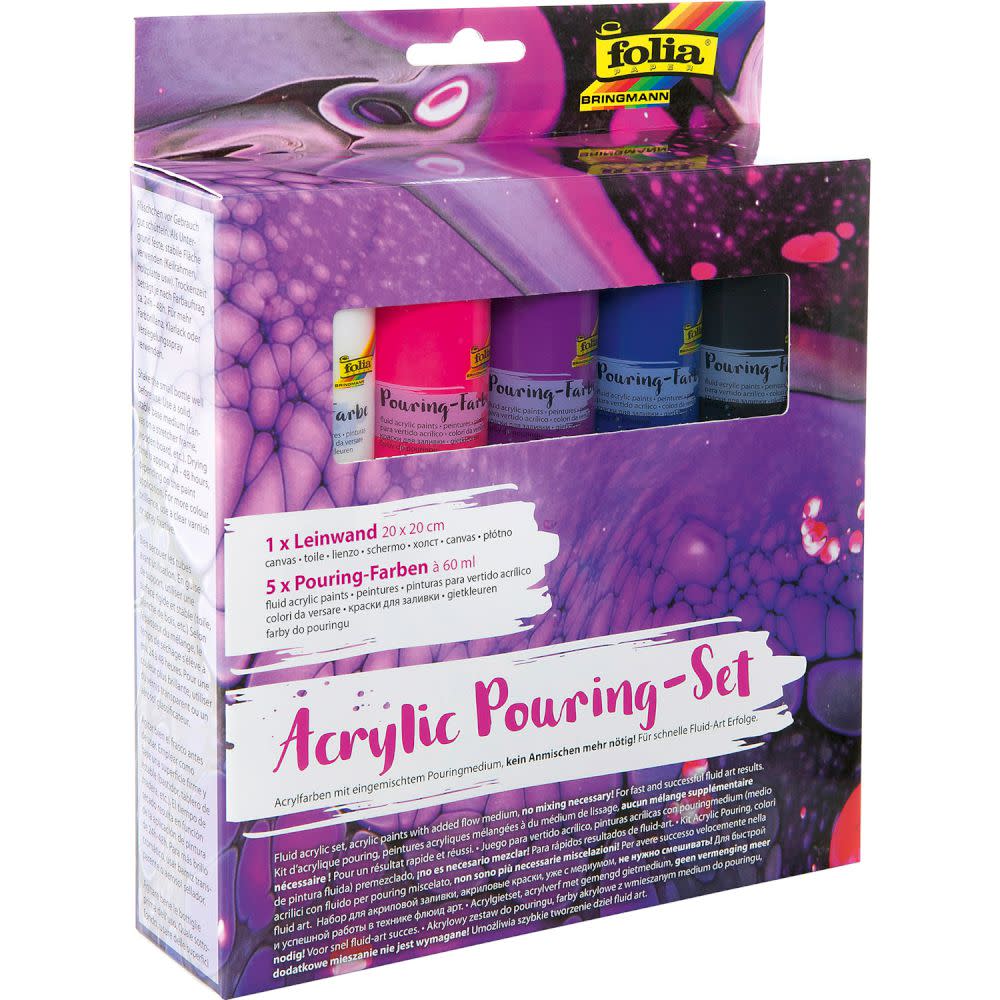 Folia Ακρυλικά Χρώματα Pouring Intensive 5x60ml & Καμβάς 20x20cm
