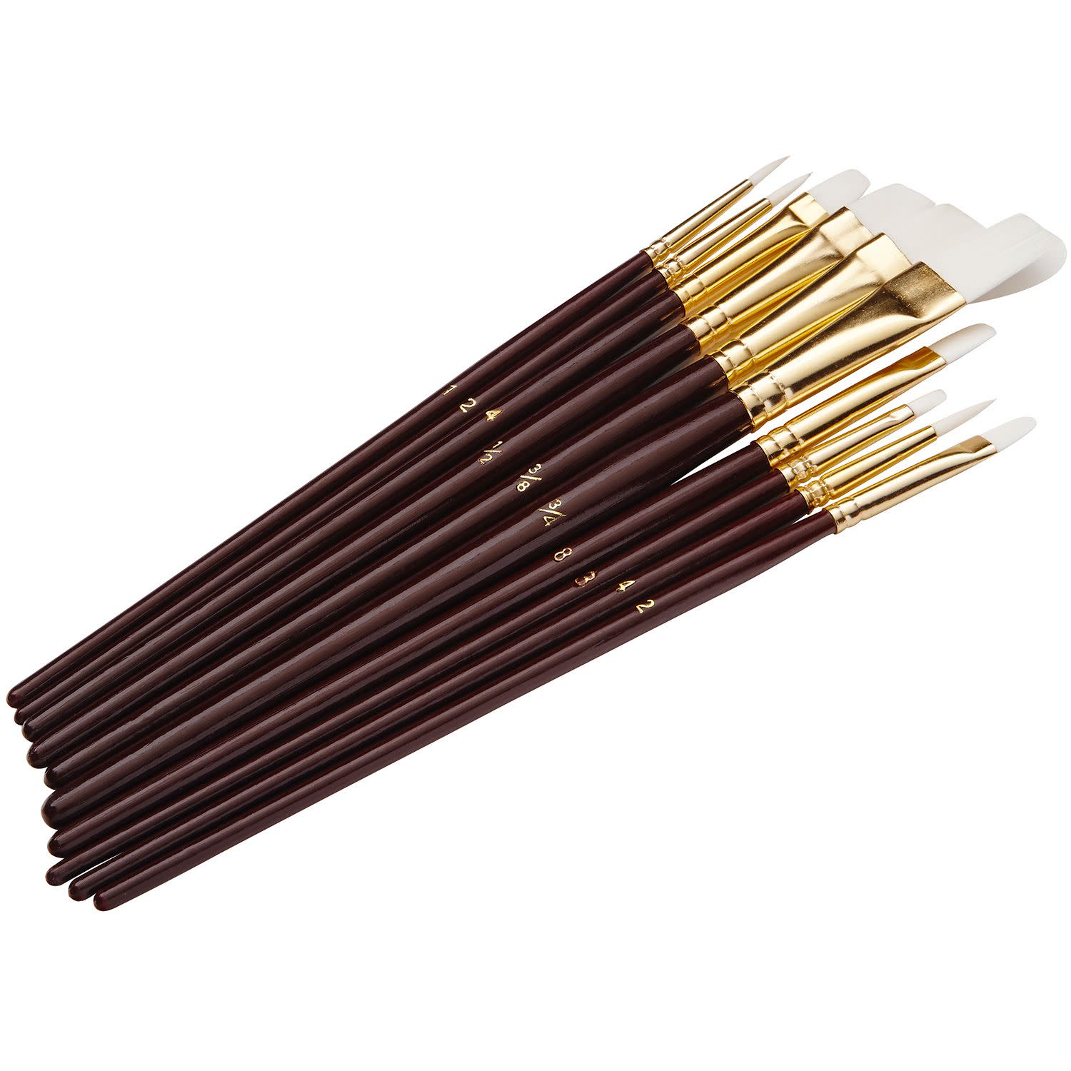 10 συνθετικά πινέλα για ακρυλικά. Το σετ περιλαμβάνει στρογγυλά και πλακέ πινέλα, κατάλληλα για υδατοδιαλυτά χρώματα.